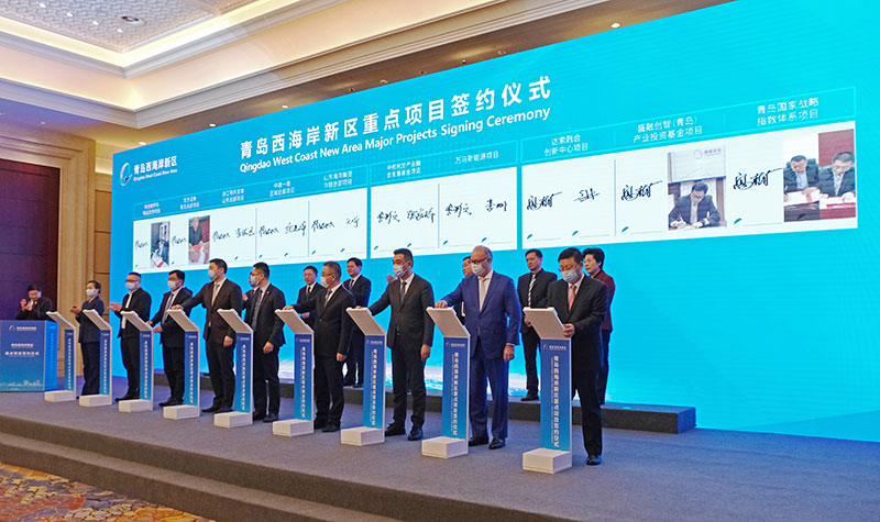 市委副书记、市长赵豪志出席签约仪式并致辞,市委常委,西海岸新区工委书记、区委书记孙永红主持仪式,管委主任、区长周安出席。