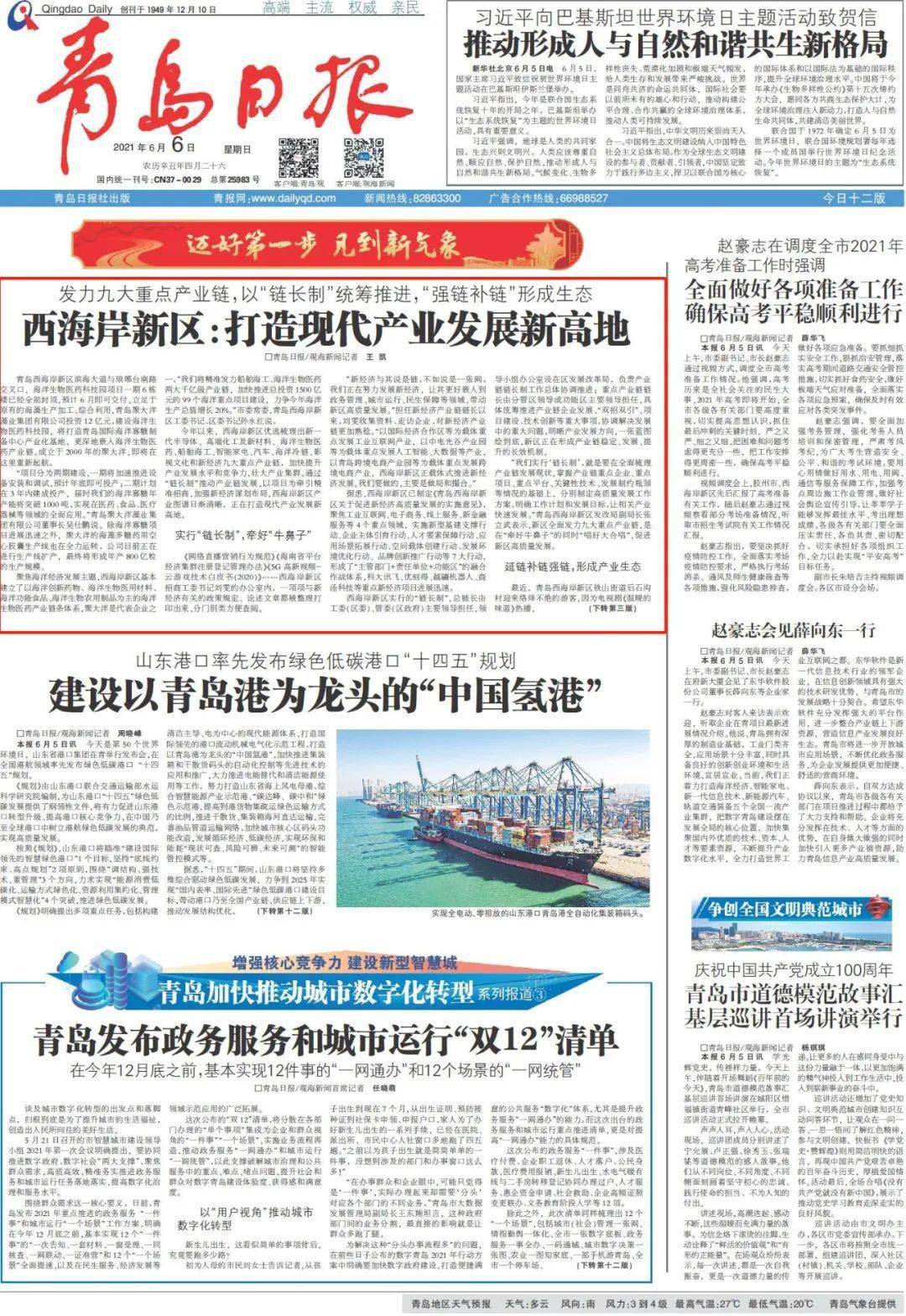 《青岛日报》2021年6月6日头版