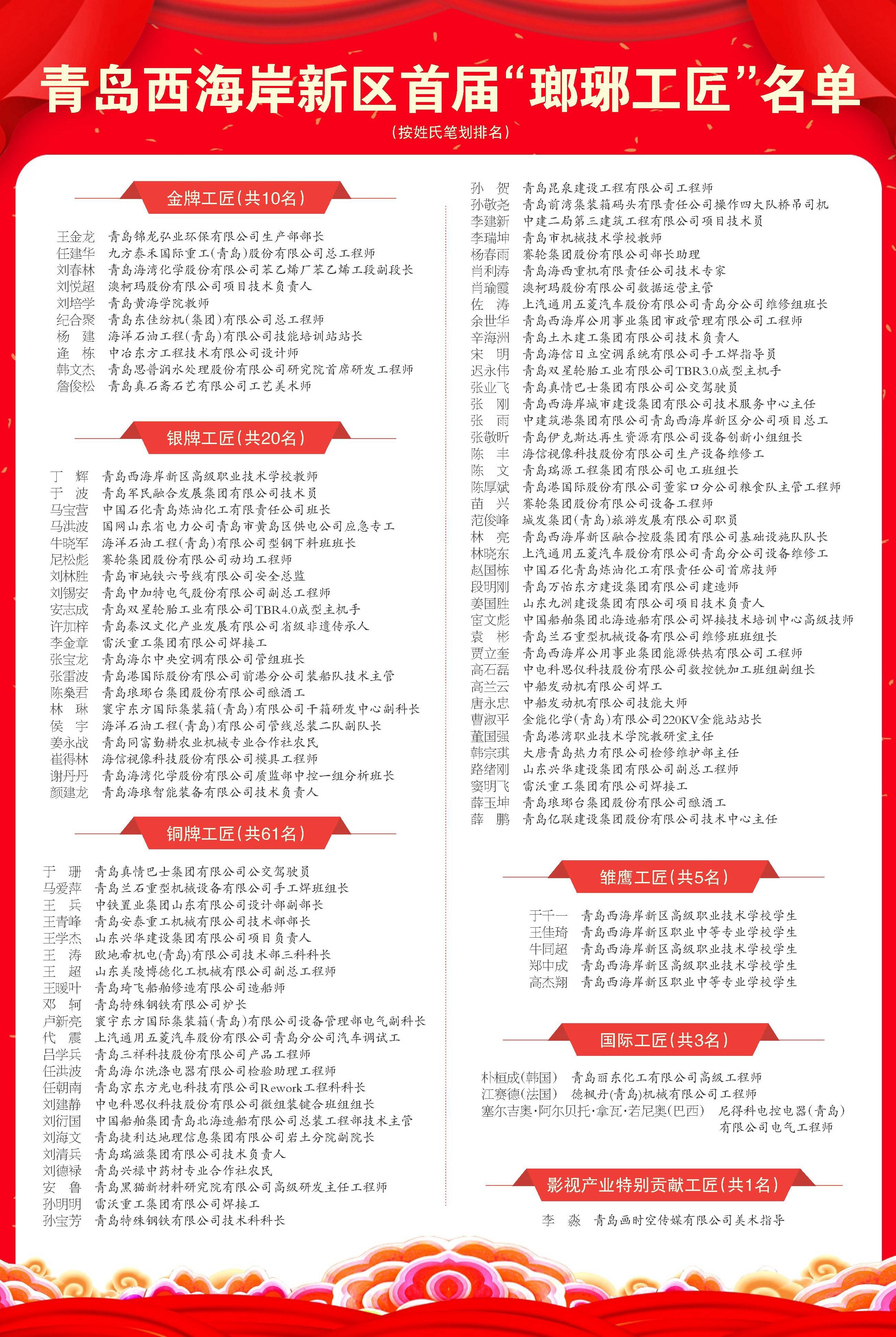 据先容 ,首届100名“瑯琊工匠”包括金牌工匠10名、银牌工匠20名、铜牌工匠61名、国际工匠3名、雏鹰工匠5名、影视工业特殊孝顺工匠1名 ,首次立异设置了国际工匠、雏鹰工匠种别。他们当中既有从国际、天下、省市手艺大赛中脱颖而出的优异选手 ,也有各行各业的手艺精英和致力于墟落振兴、身怀特技的“民间能手” ,涵盖了船舶海工、高端装备、智能家电、芯屏、海洋生物医药等19个行业类型 ,实现新区“5+5+7”重点工业全笼罩 ,一线下层岗位职工占比达87%。
